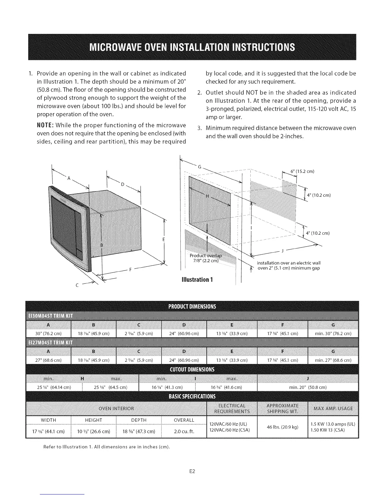 and the wall oven should be 2-inches.