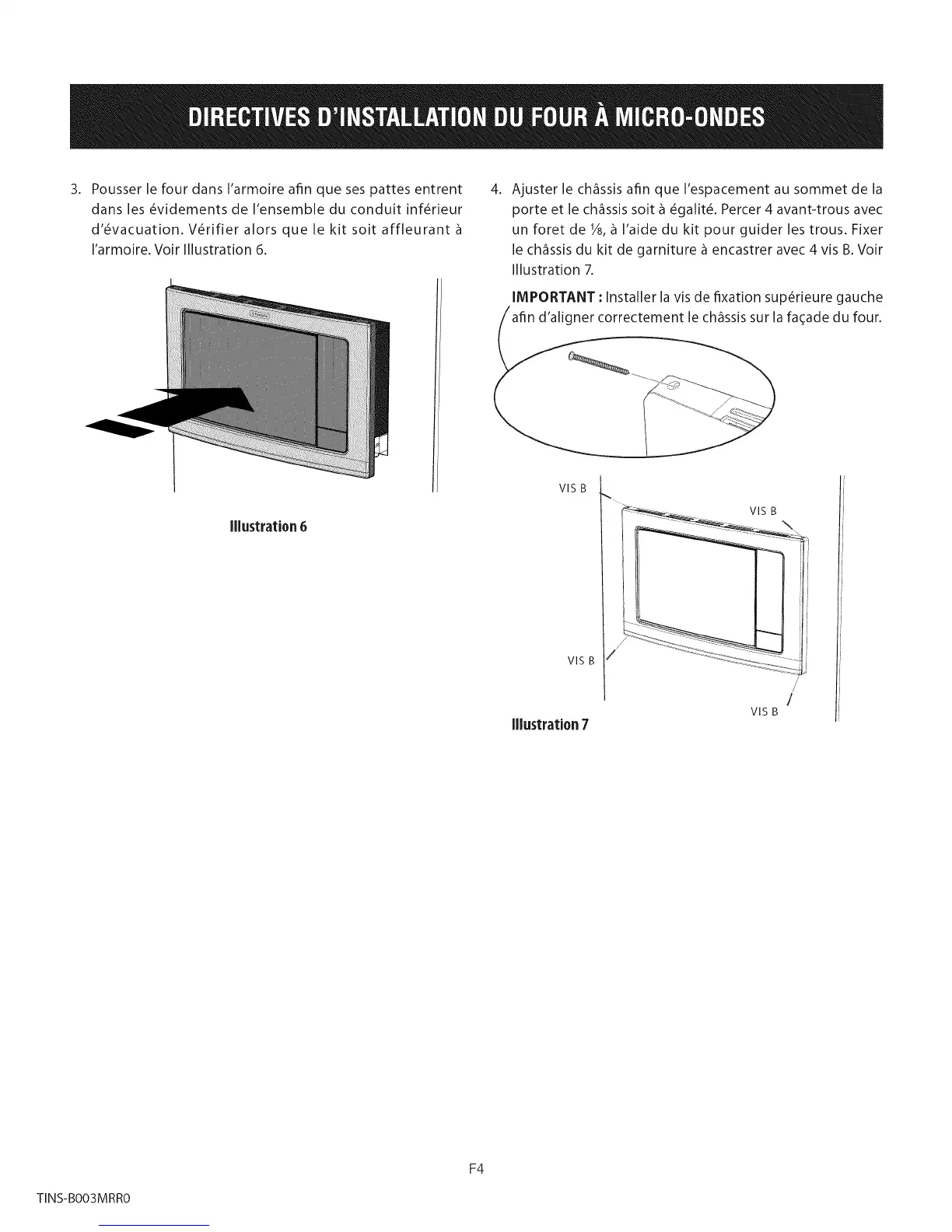 le chassis du kit de garniture _ encastrer avec 4 vis B. Voir