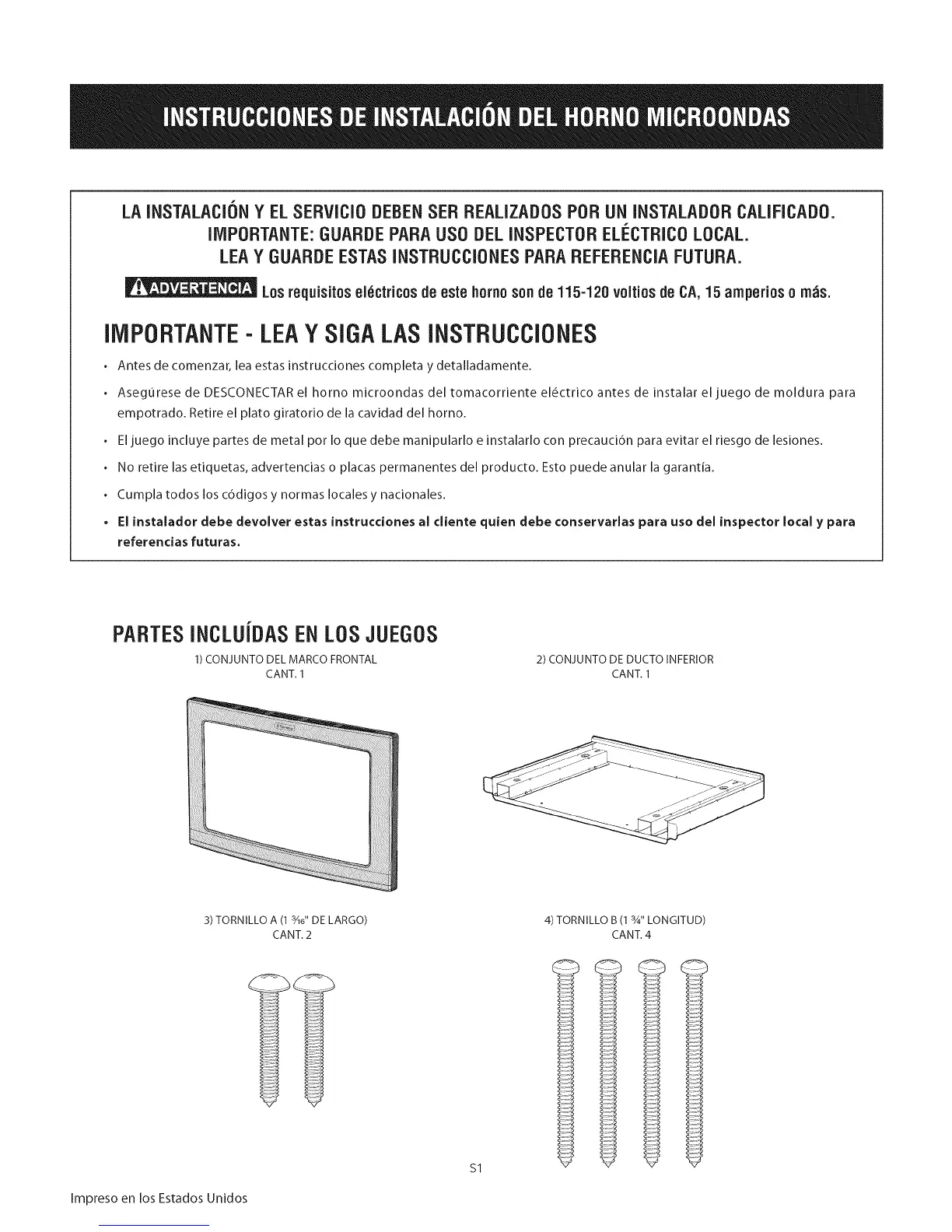 . Asegurese de DESCONECTAR el homo microondas del tomacorriente el_ctrico antes de instalar el juego de moldura para