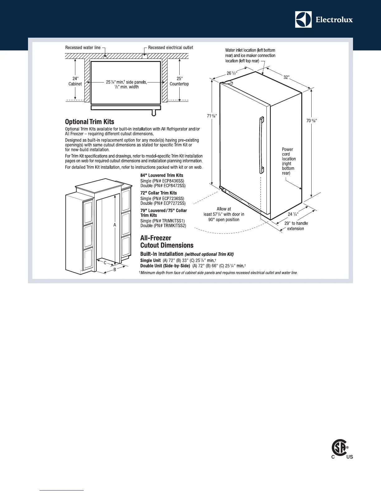 For planning information, refer to model-specific Trim Kit Installation pages on web.