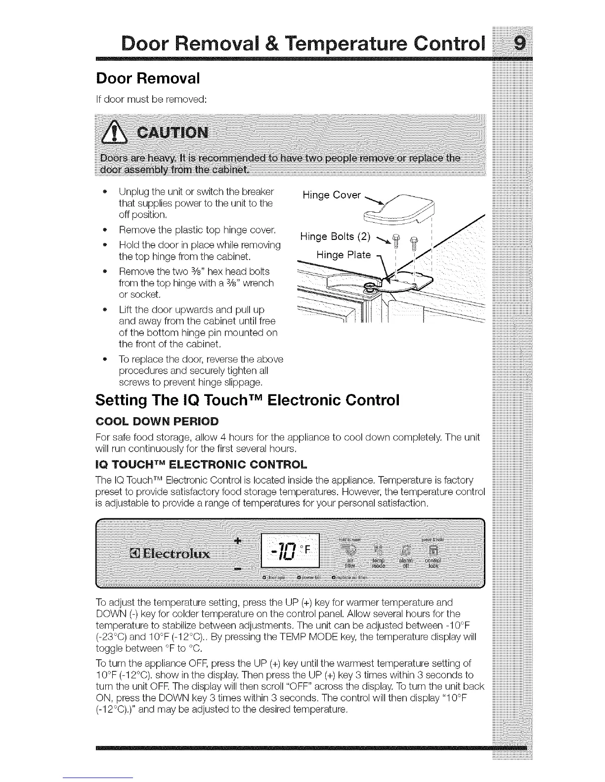 The IQ Touch TM Electronic Control is located inside the appliance. Temperature is factory