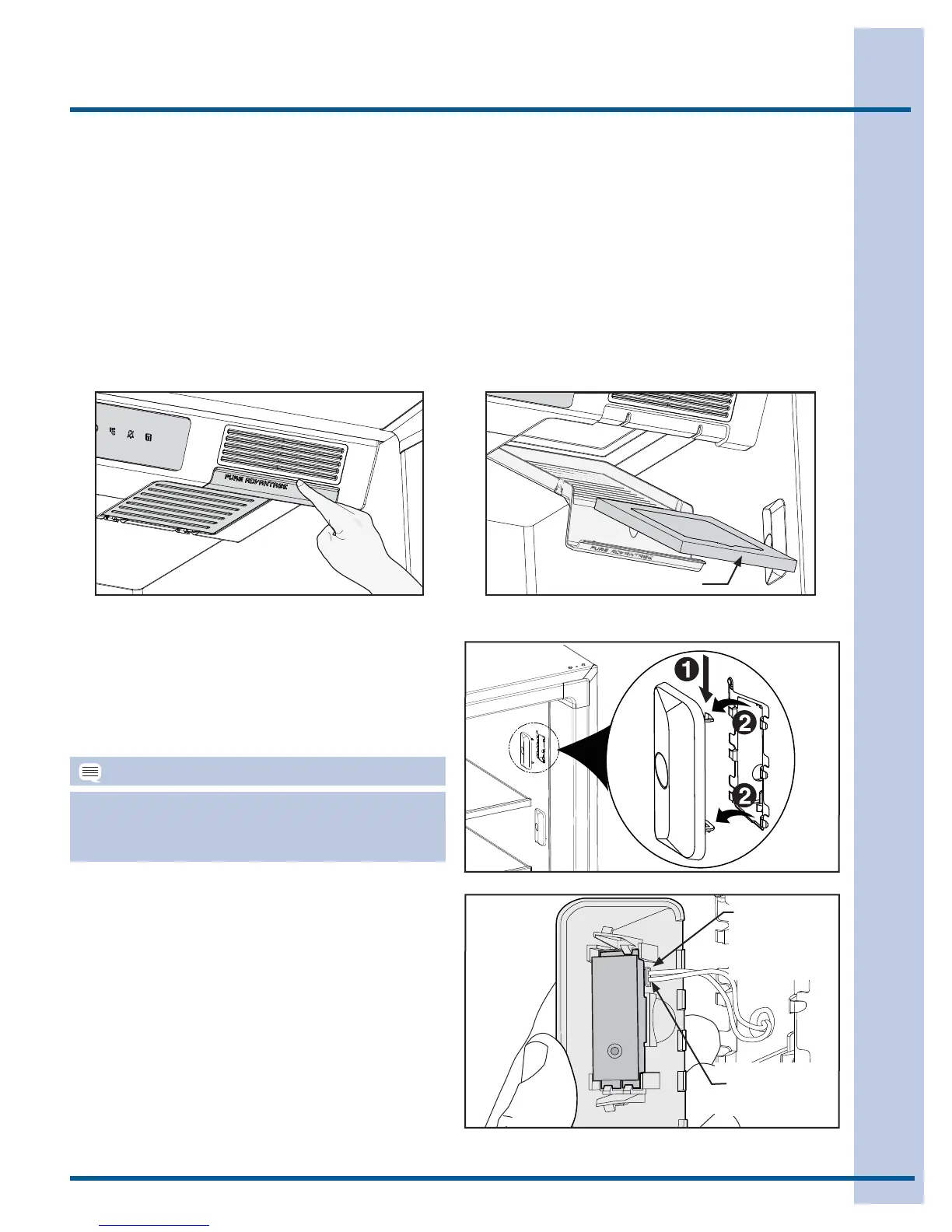 • Retire el frente de la cubierta de fi ltro de aire Pure Advantage™. Esto libera la cubierta inferior abatible para que se abra.