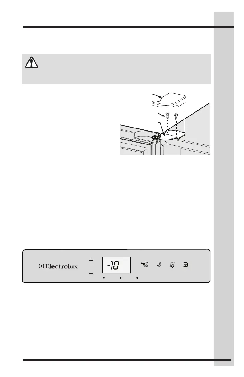 • Remove the plastic top hinge cover.