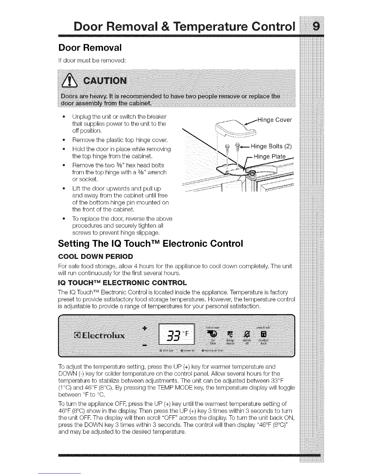 The IQ Touch TM Electronic Control is located inside the appliance. Temperature is factory