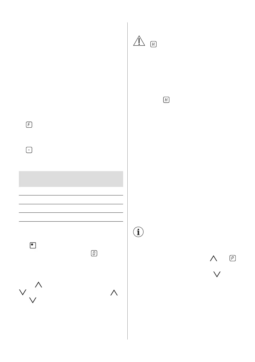Heat setting The hob deactivates