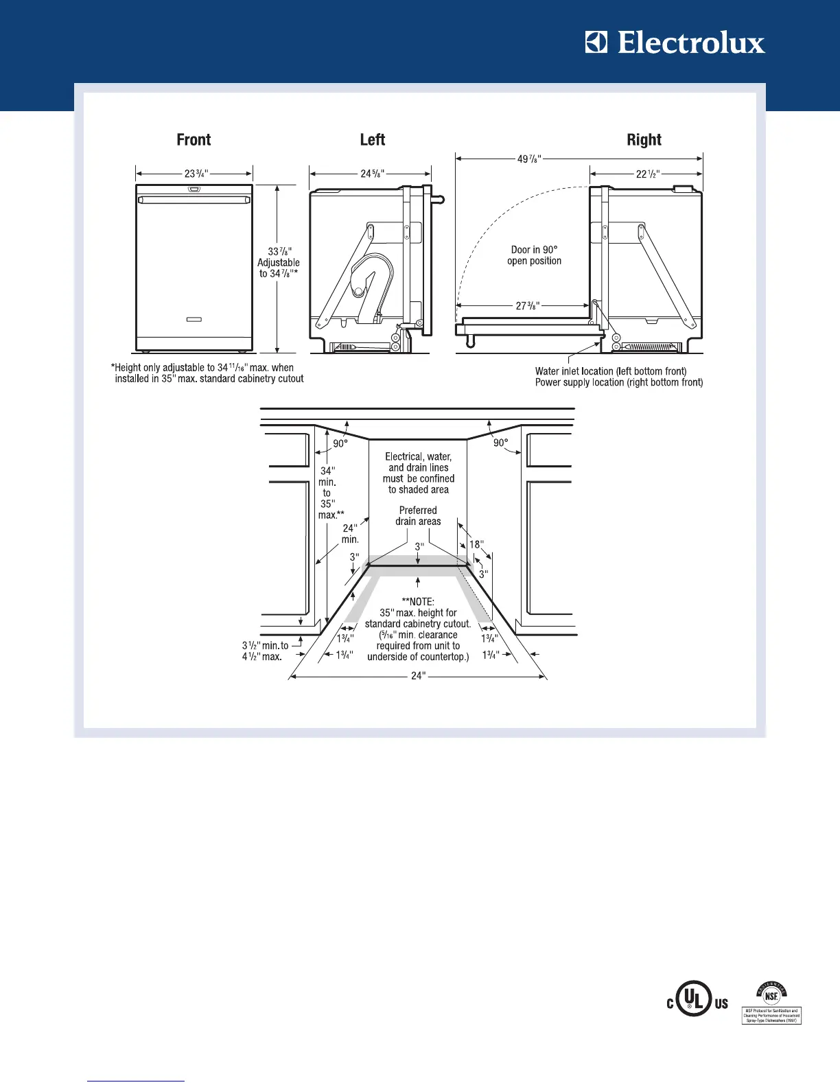 34-11/16" max. when installed in 35" max. standard cabinetry cutout to