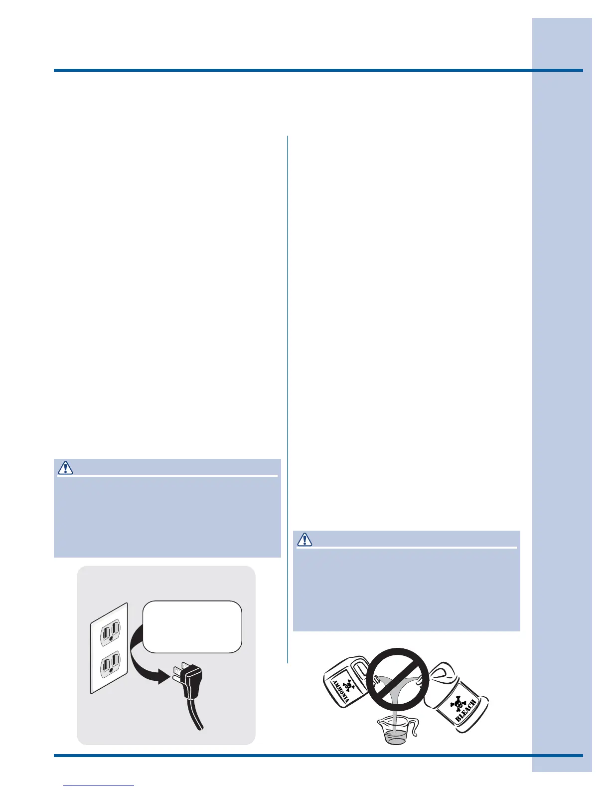 Do not mix chlorine bleach with ammonia or •