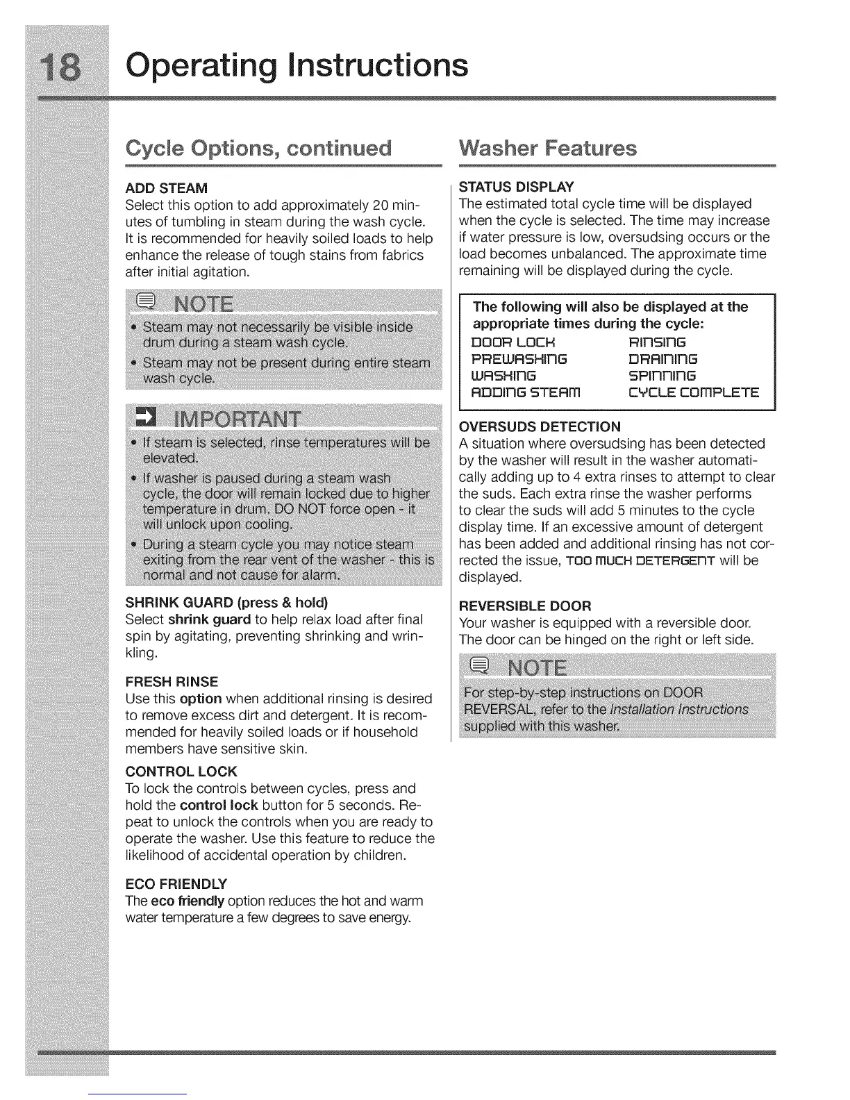 Washer Features