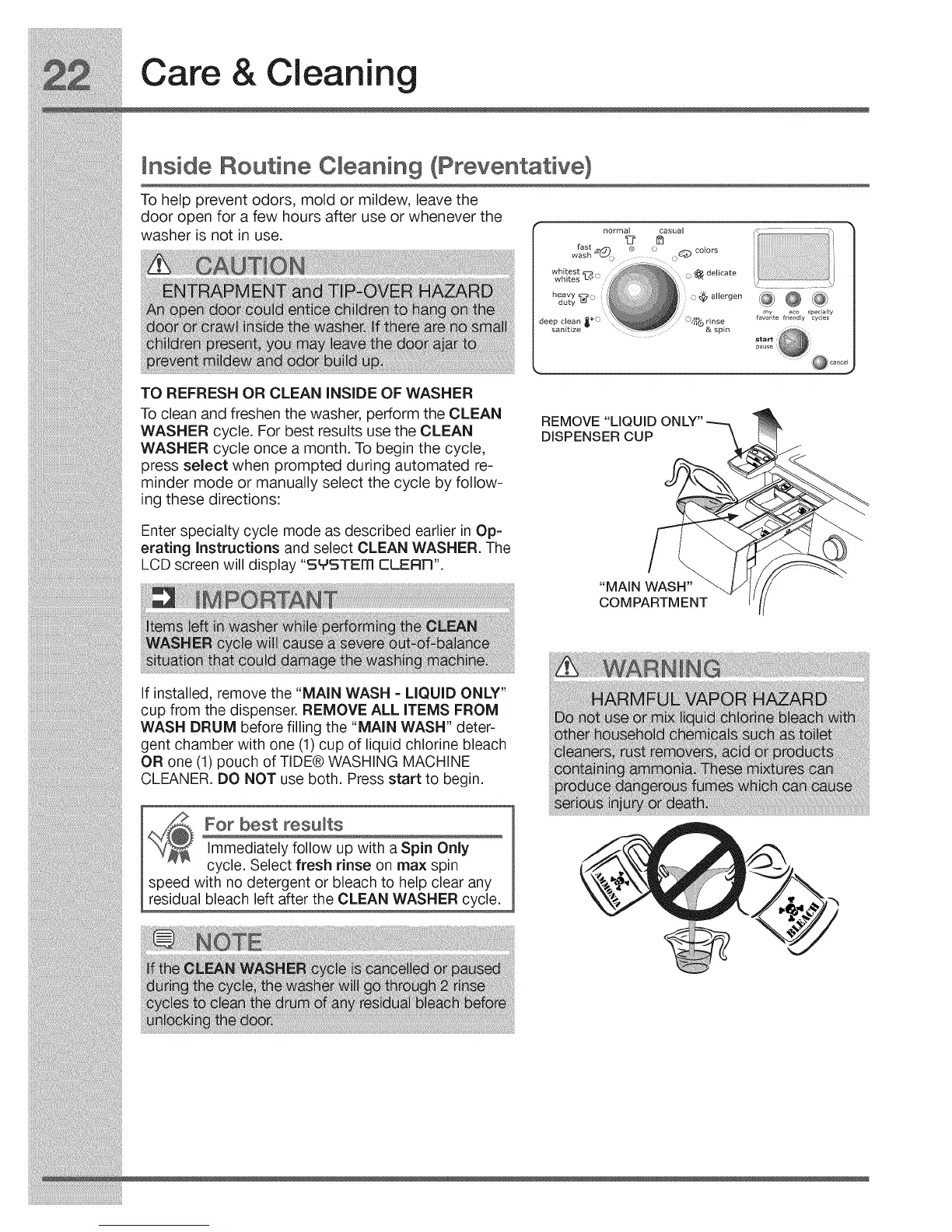 TO REFRESH OR CLEAN INSIDE OF WASHER