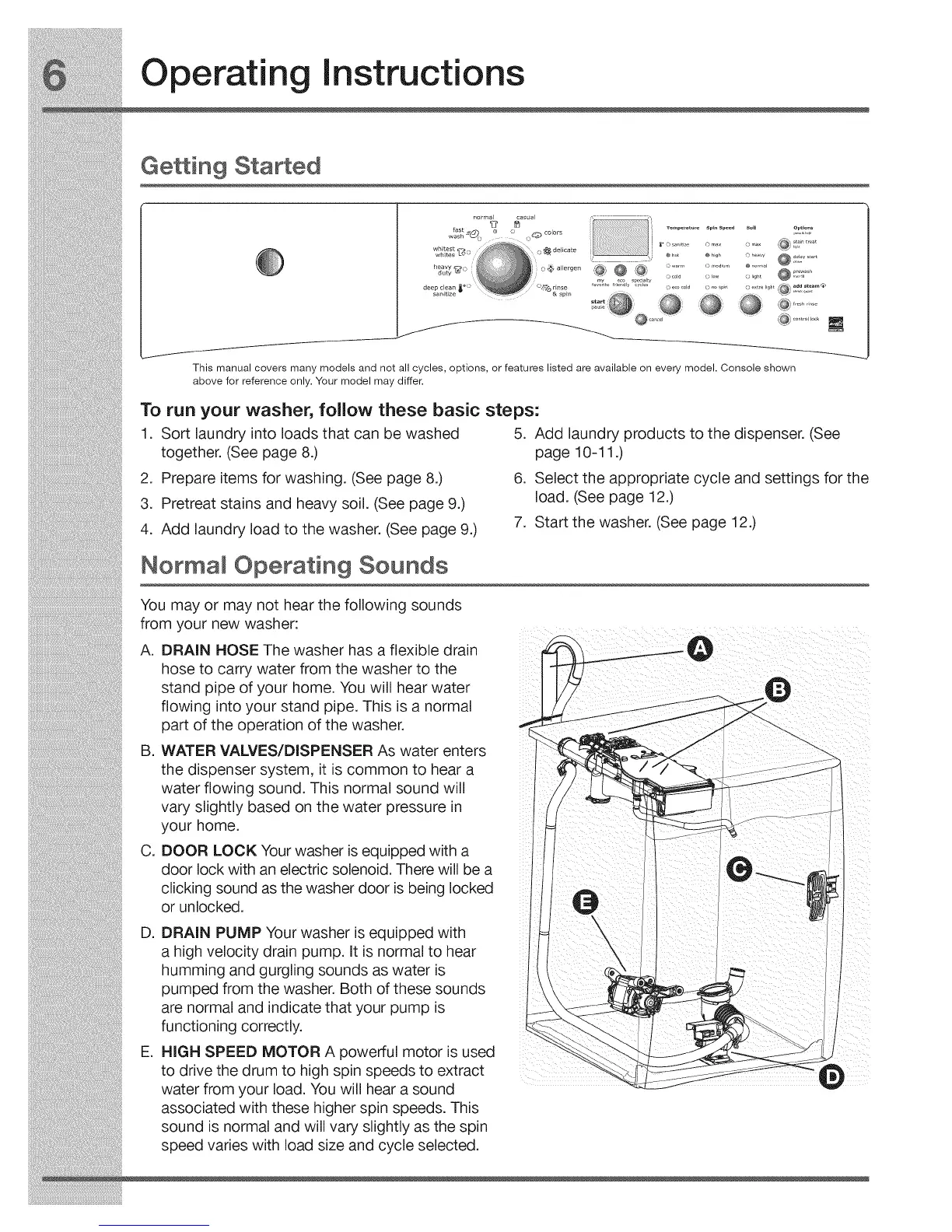 This manual covers many models and not all cycles, options, or features listed are available on every model. Console shown