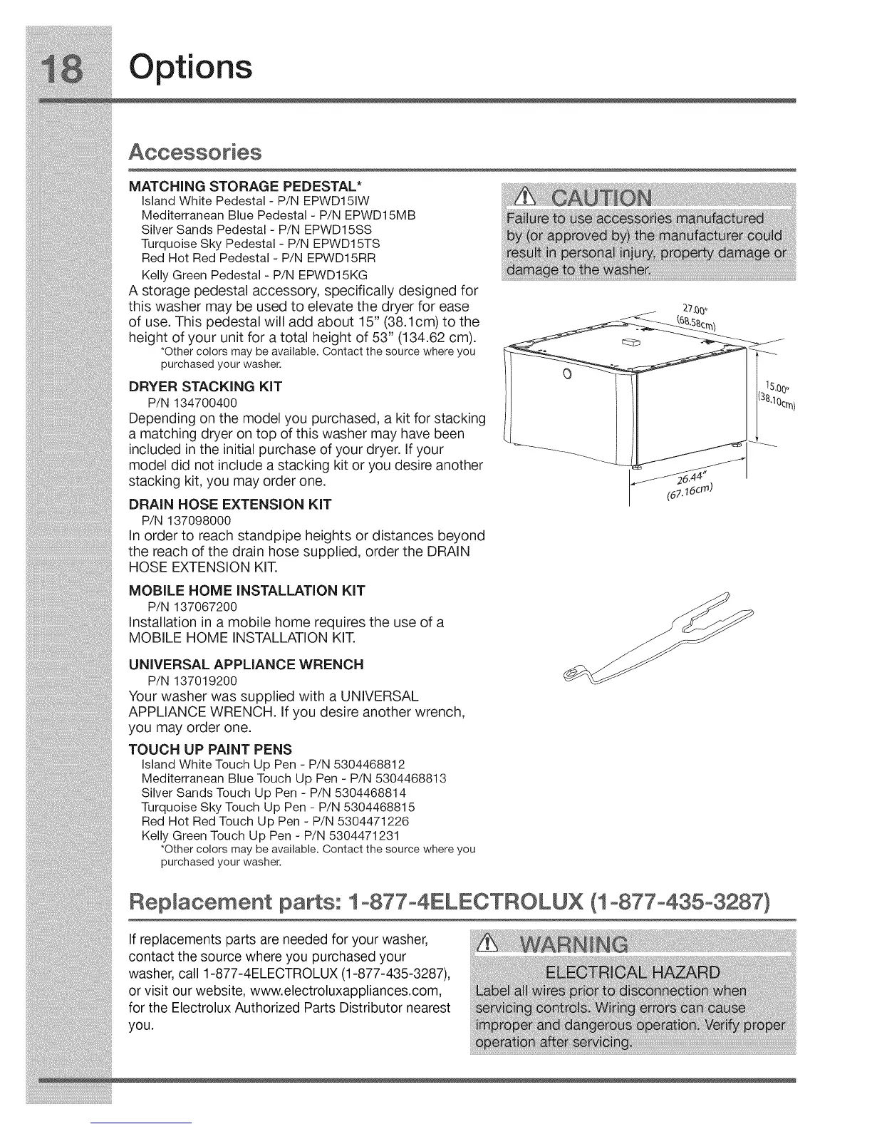 washer, call 1-877-4ELECTROLUX (1-877-435-3287),