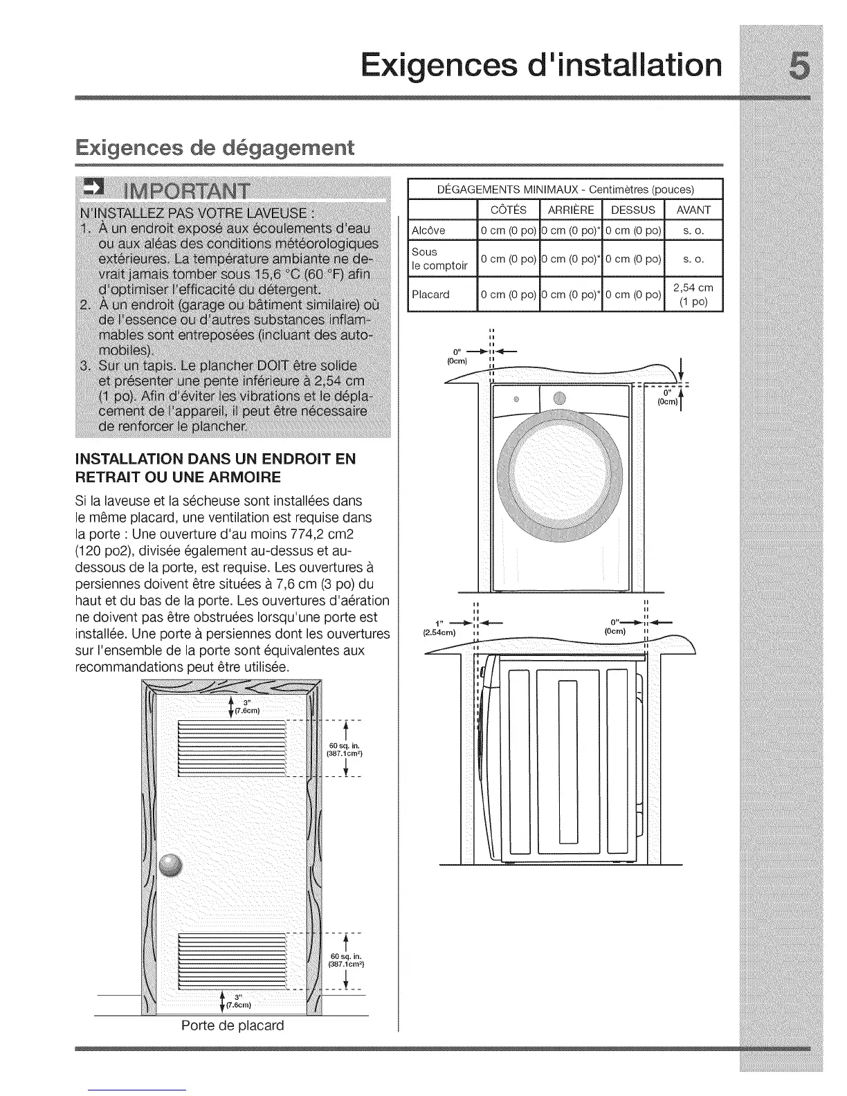 dessous de la porte, est requise. Les ouvertures