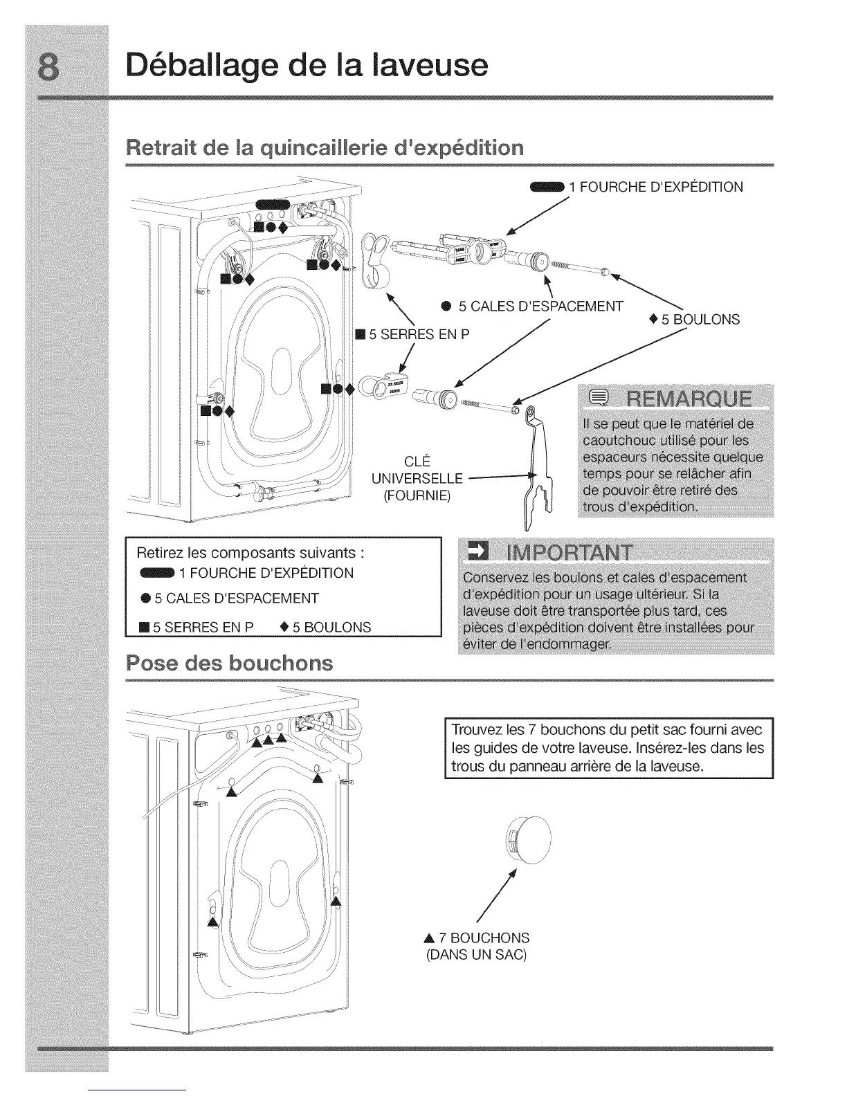 les guides de votre laveuse. Ins6rez-les dans les