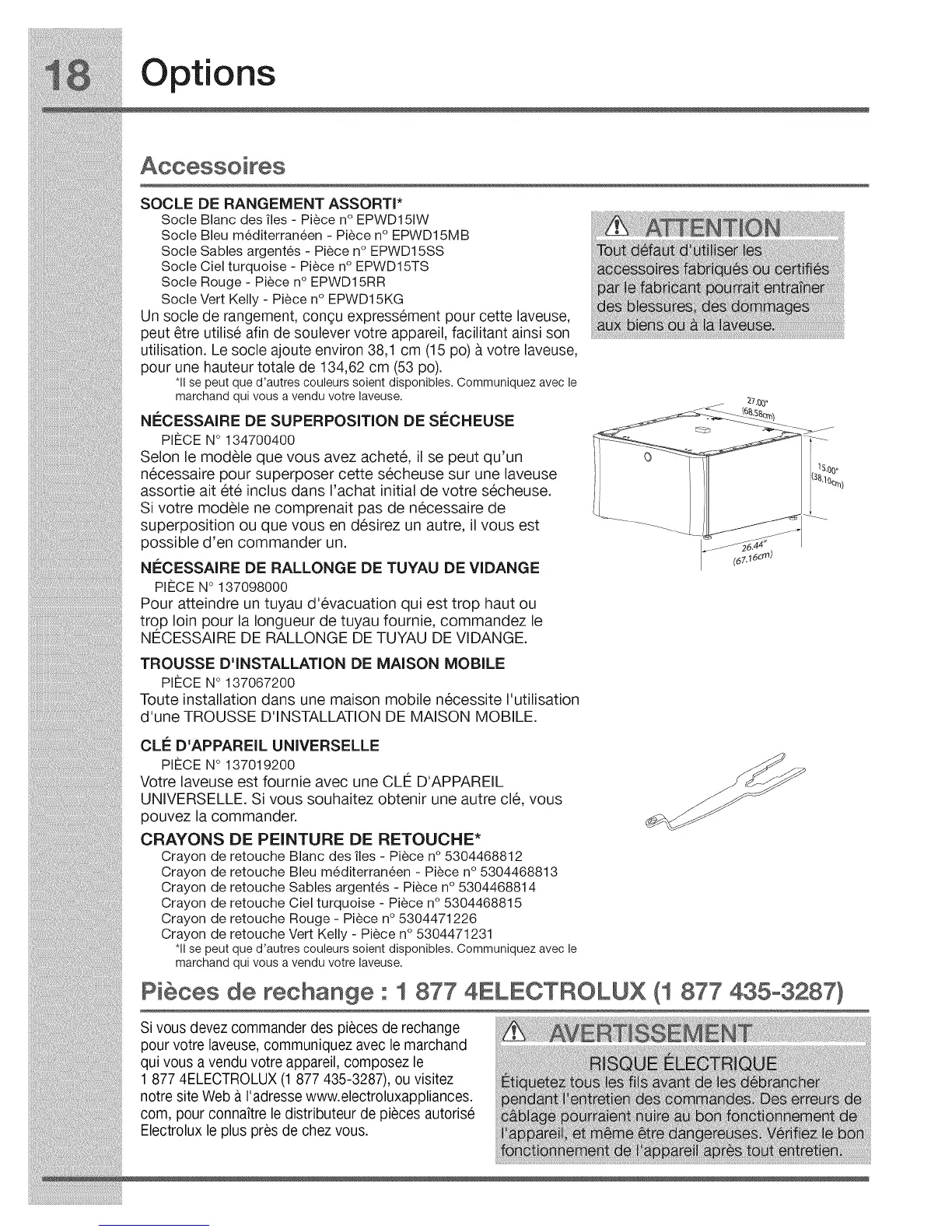 utilisation. Le socle ajoute environ 38,1 cm (15 po) 9.votre laveuse,