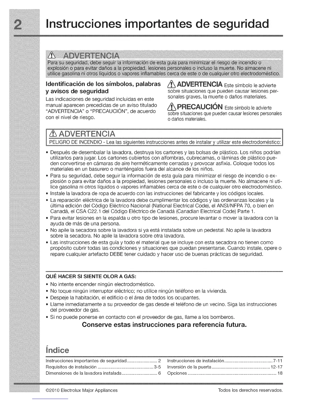 @2010 Electrolux Major Appliances Todos los derechos reservados.