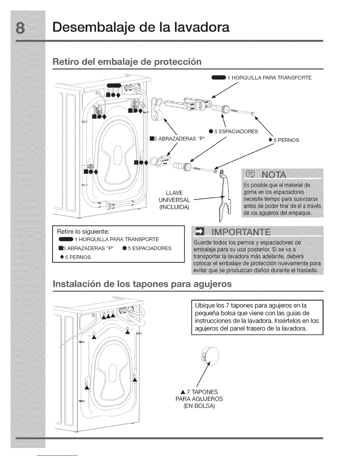 instrucciones de la lavadora. Insertelos en los