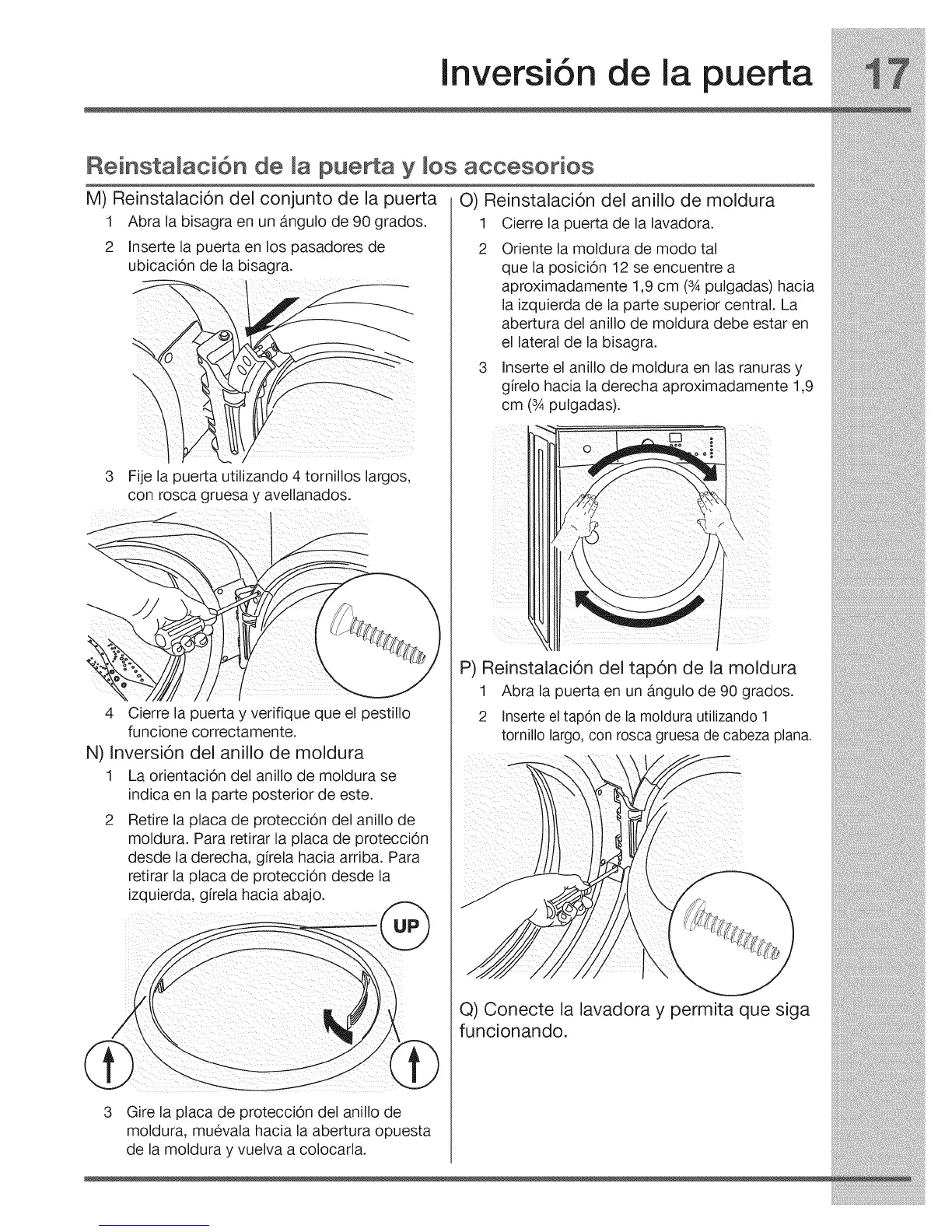 M) Reinstalaci6n del conjunto de la puerta