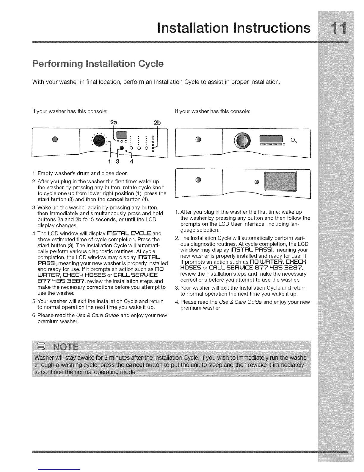 With your washer in final location, perform an Installation Cycle to assist in proper installation.