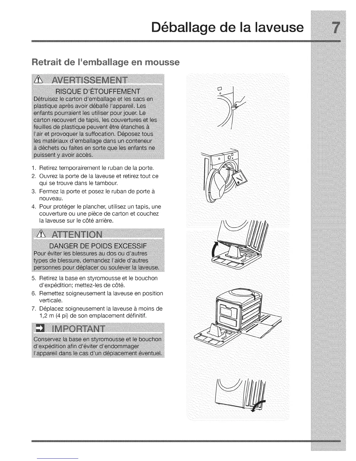 7. Deplacez soigneusement la laveuse a moins de