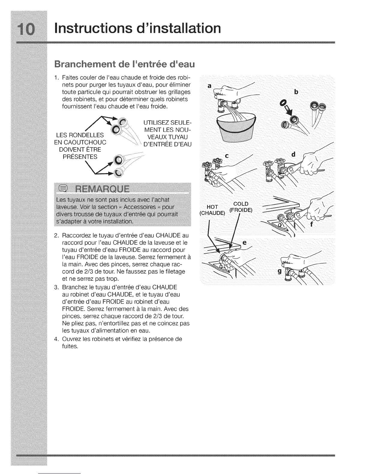 I'eau FROIDE de la laveuse. Serrez fermement