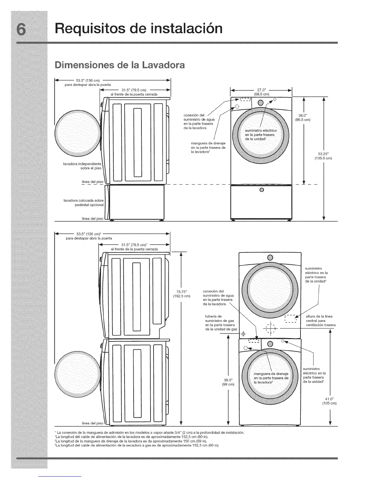 3La Iongitud del cable de alimentaci6n de la secadora a gas es de aproximadamente 152,5 cm (60 in).