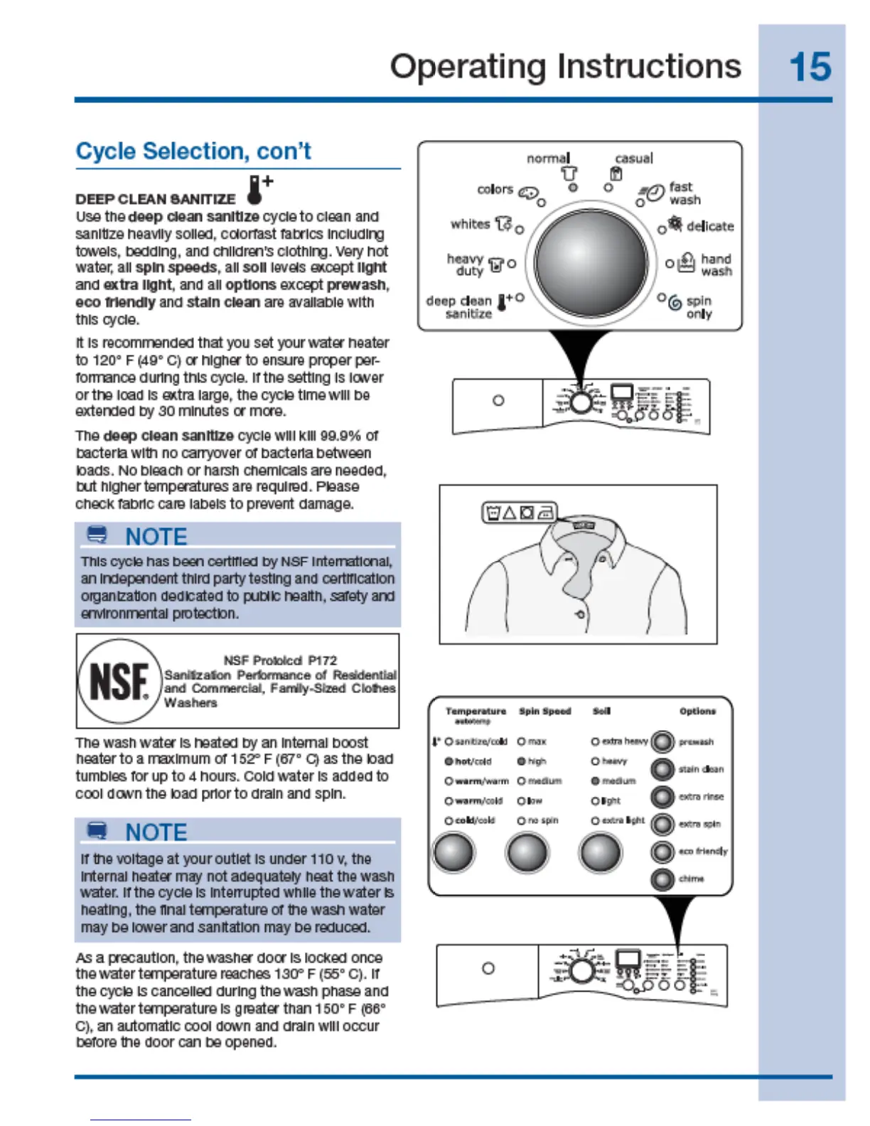 Electrolux EIFLW55H - Cycle Selection: Deep Clean Sanitize