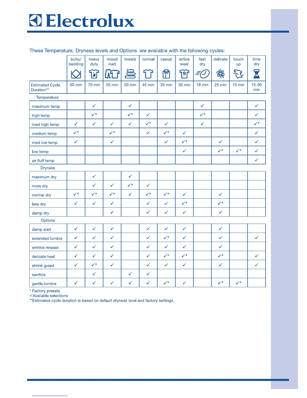 WWaavvee--TToouucchh DDrryyeerr OOppttiioonnss CChhaarrtt