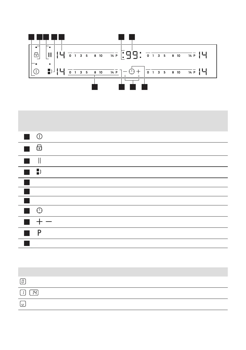 - Spie del timer delle zone di cottura Indica per quale zona è impostato il tempo.