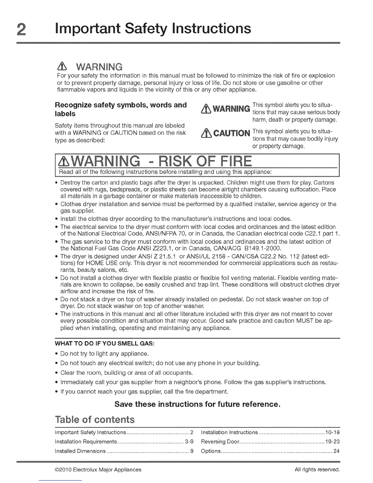 • Destroy the carton and plastic bags after the dryer is unpacked. Children might use them for play. Cartons