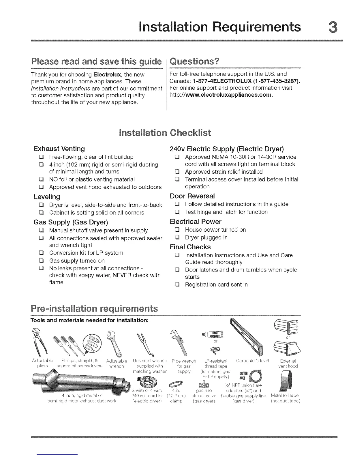 Canada: 1-877-4ELECTROLUX (1-877-435-3287).