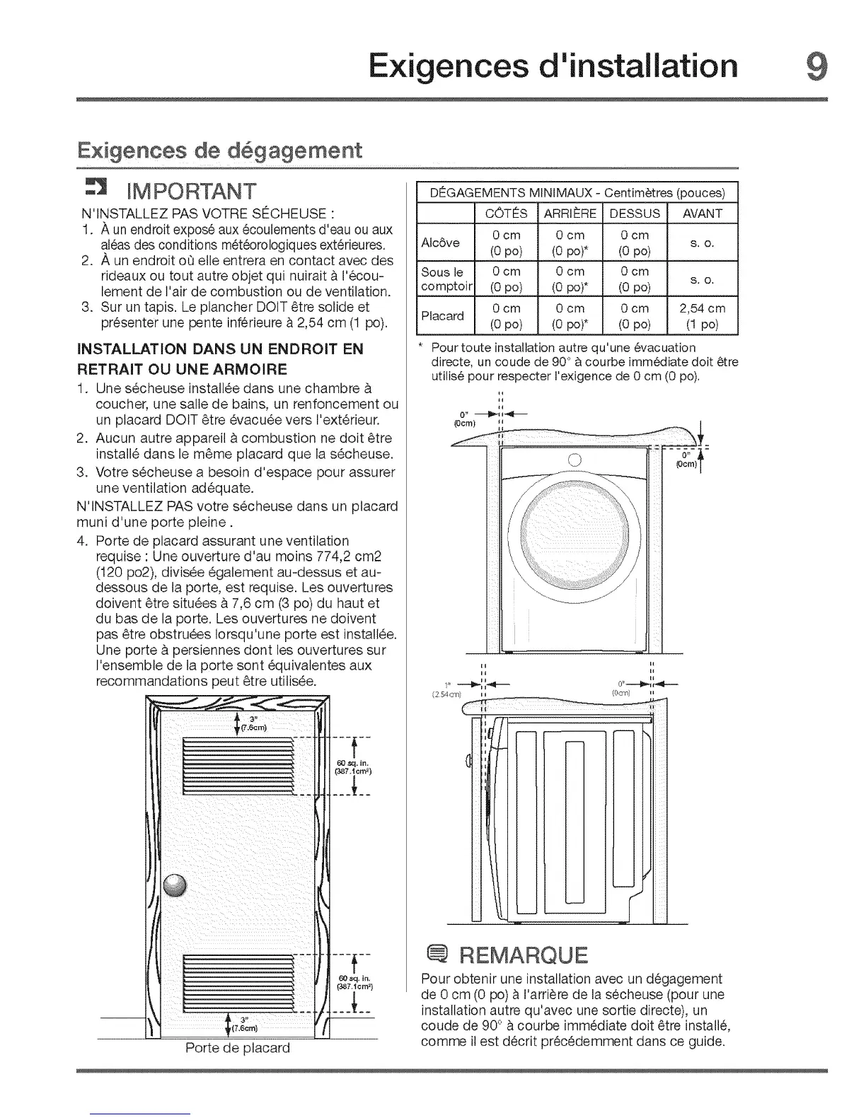 dessous de la porte, est requise. Les ouvertures