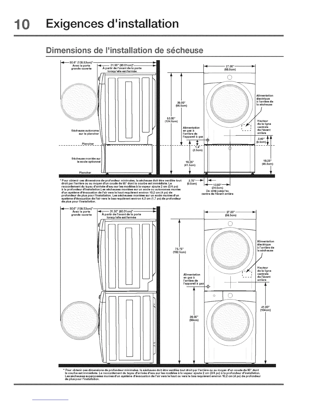 Pour obtenir c_ dimensions de profondeur minimales, tn s&cheuse doit &tre ventil&s tout droit par I'nrribre ou nu moyen d'un coude de gO ° dont