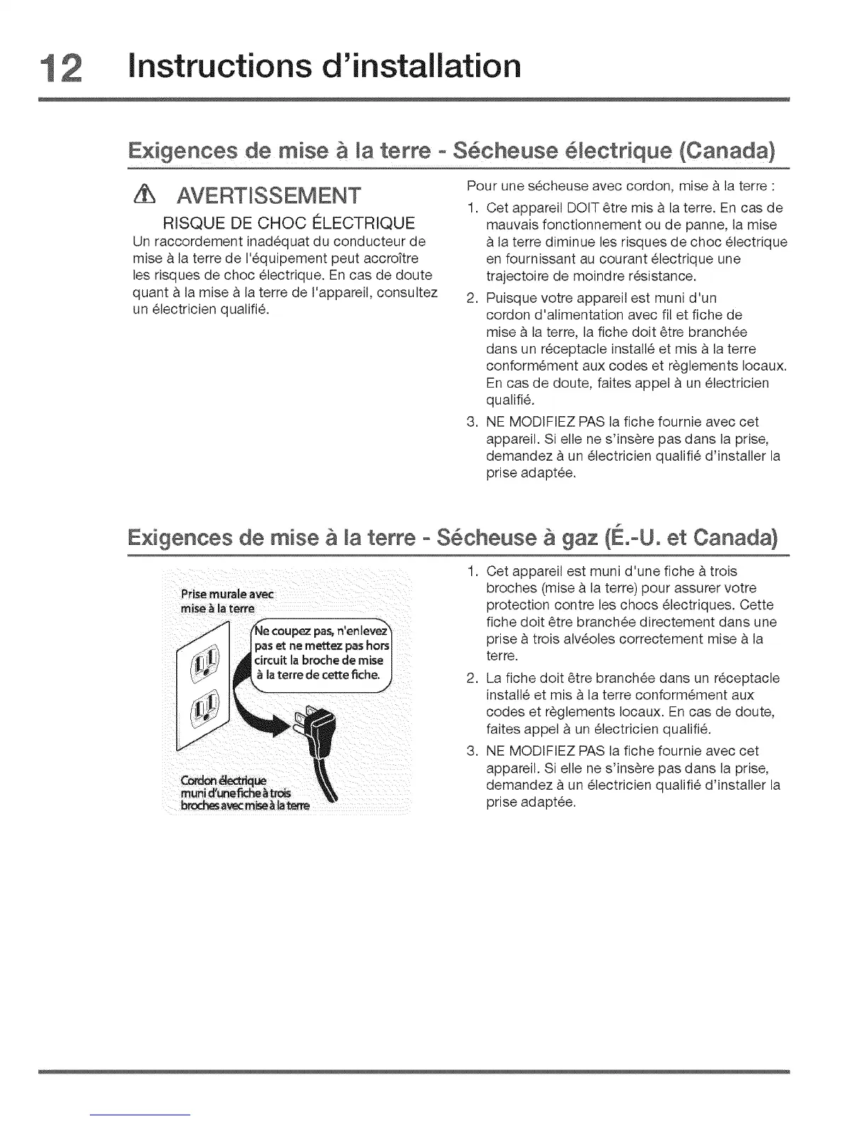 mise _ la terre, la fiche doit 6tre branch6e
