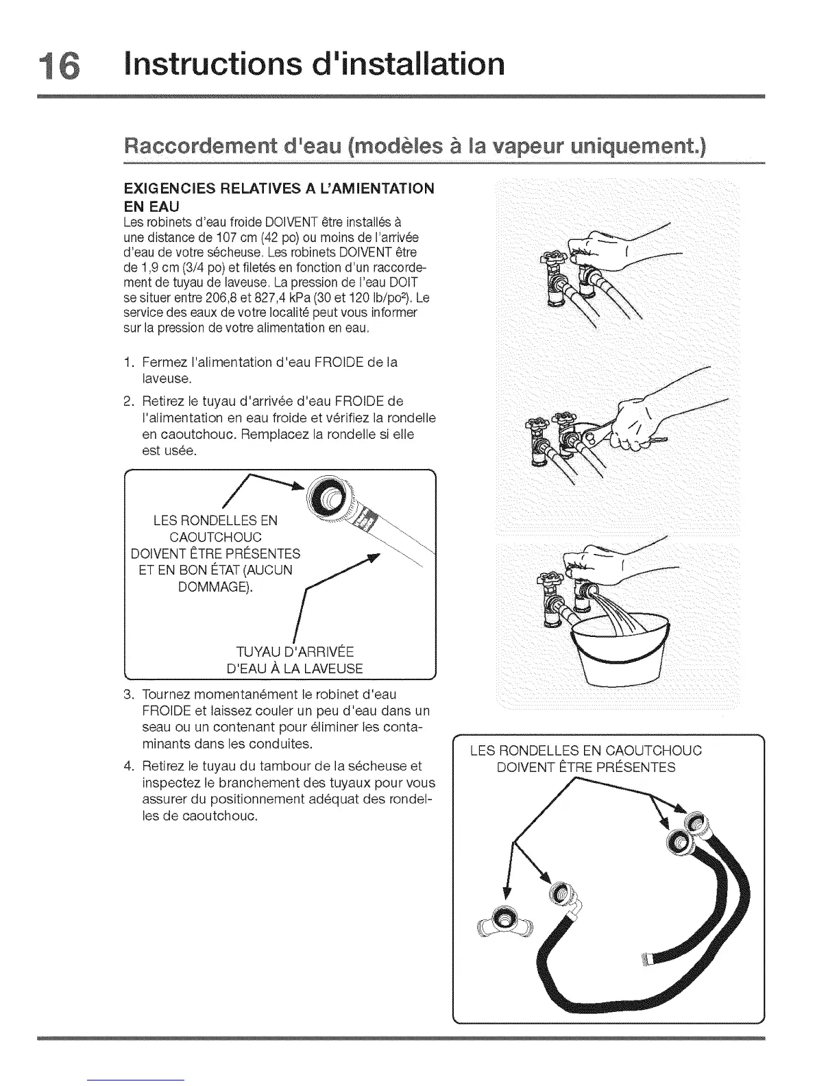 I'atimentation en eau froide et v_rifiez la rondelle