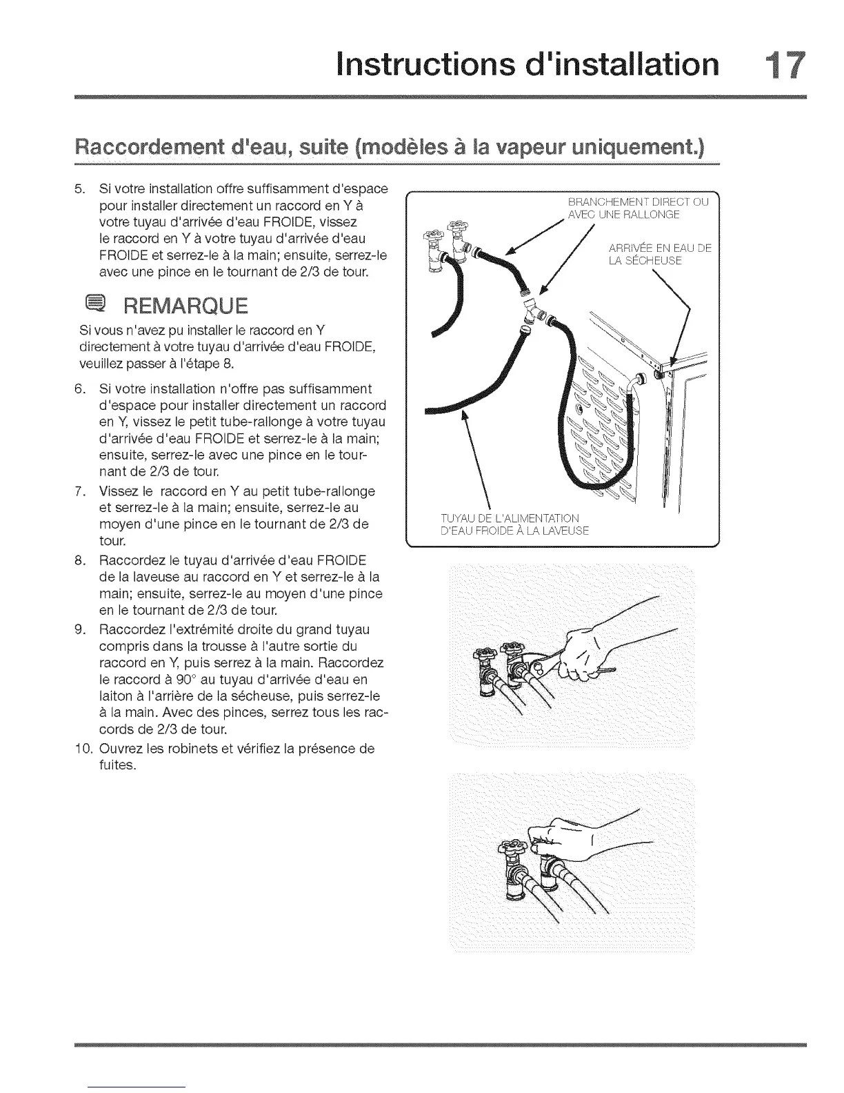 Raccordement d°eau, suite (mod#[es & [a vapeur uniquemento}