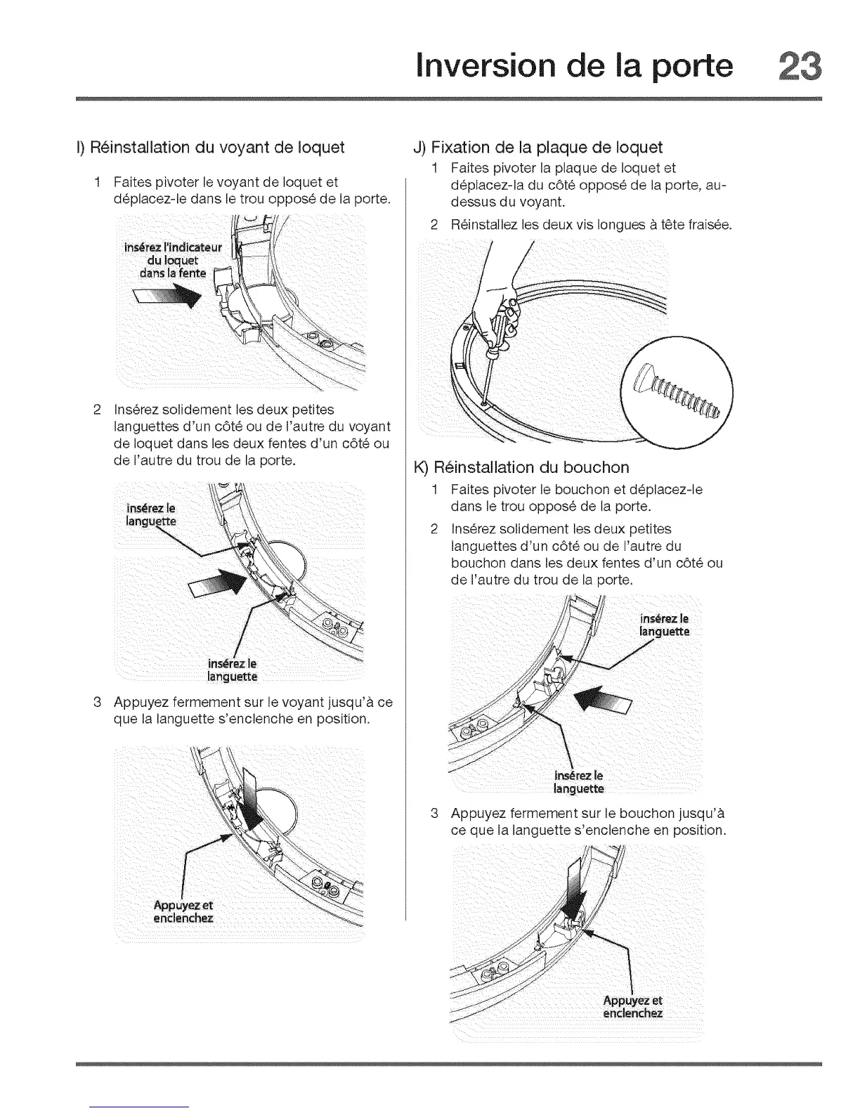 d6placez-le dans le trou oppose de la porte.