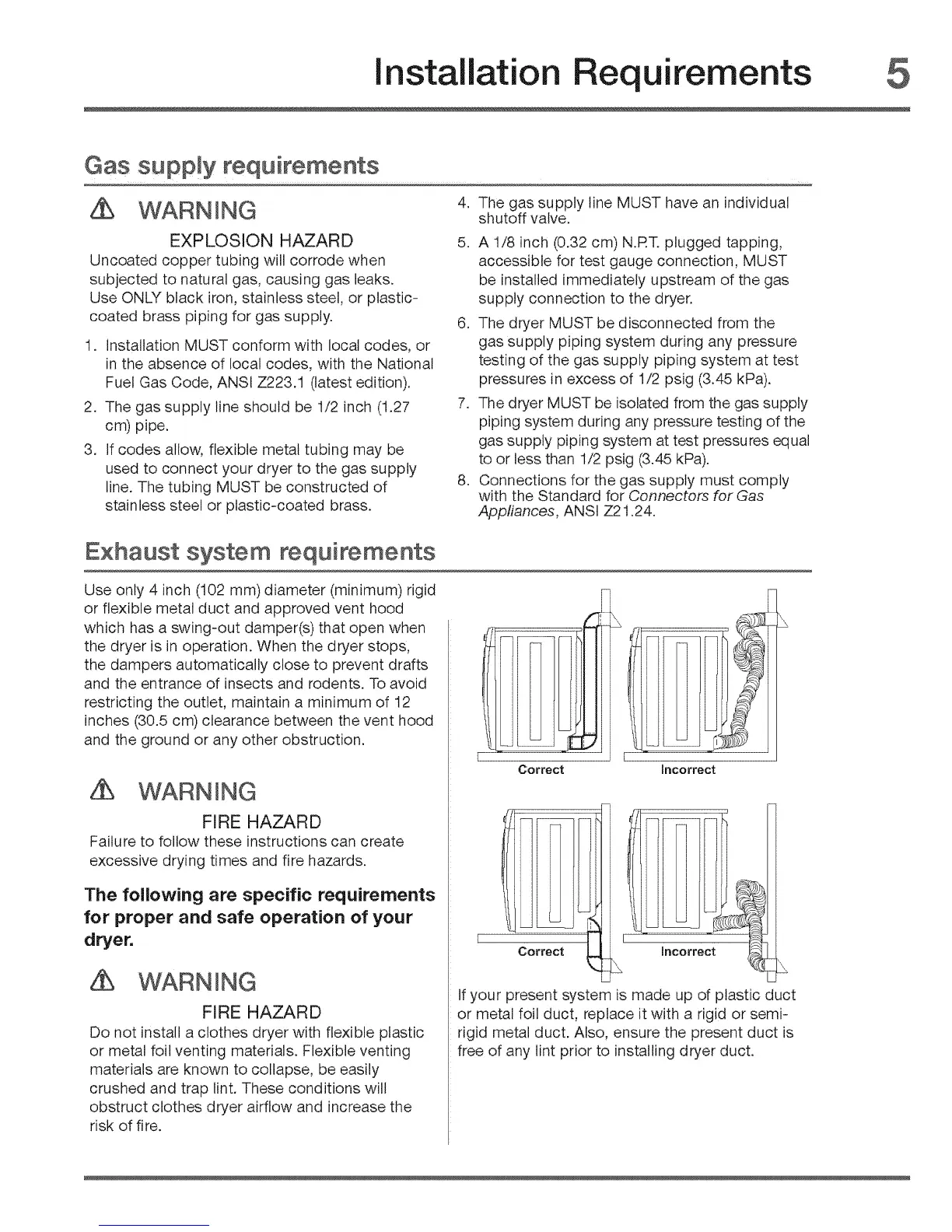 2. The gas supply line should be 1/2 inch (1.27