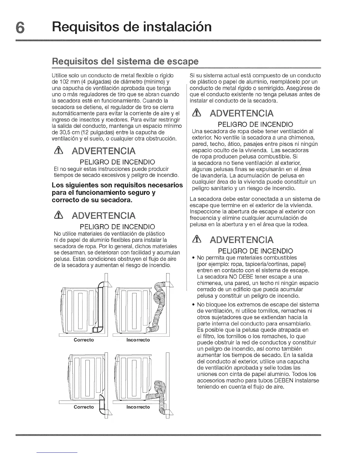 ventilaci6n y el suelo, o cualquier otra obstrucci6n.
