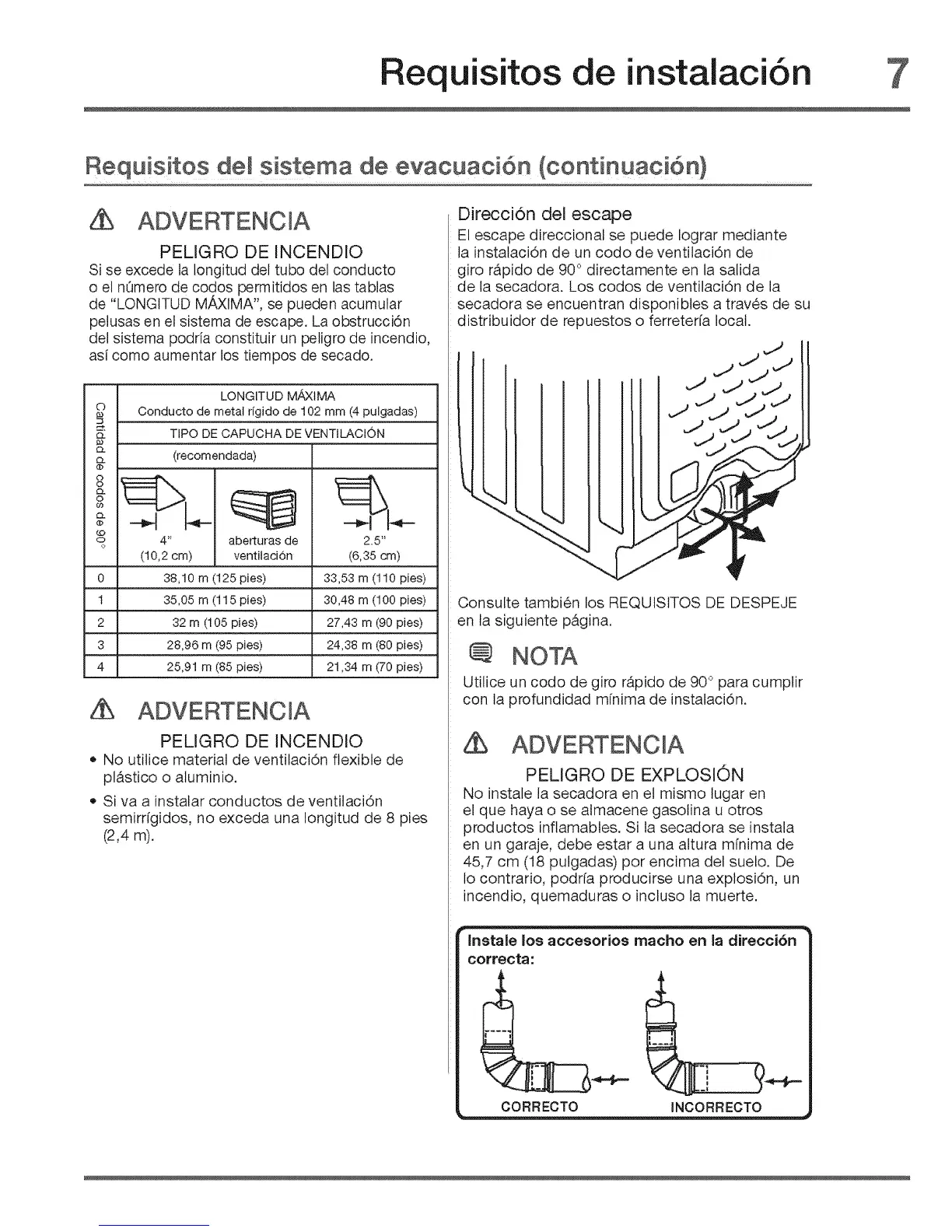 Requisitos deJ sistema de evacuaci6n (continuaci6n}