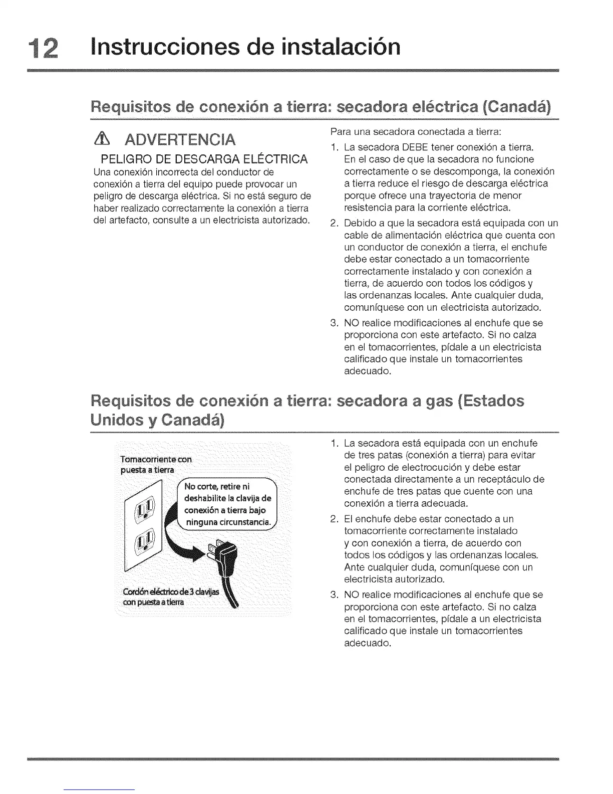 1. La secadora DEBE tener conexi6n a tierra.