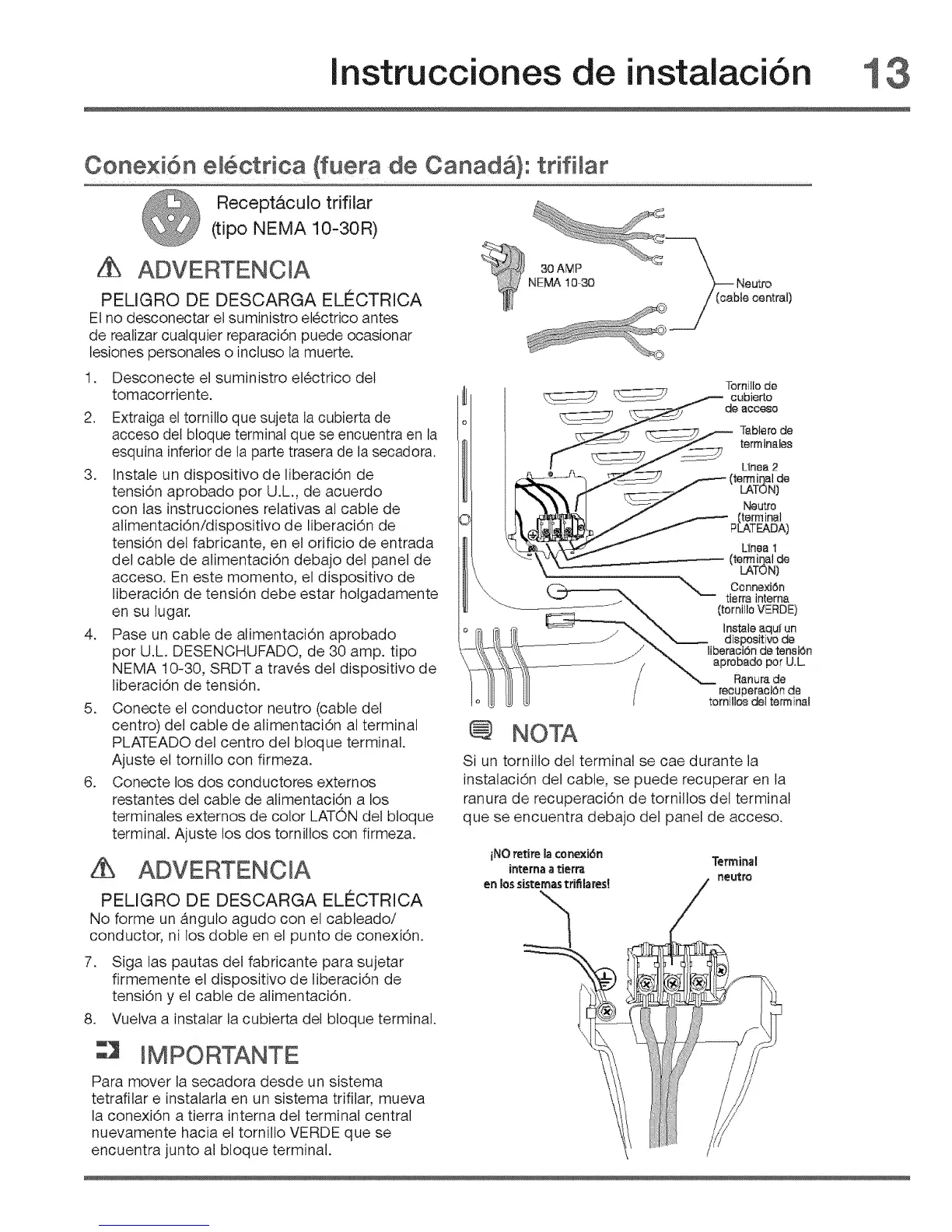 NEMA 10-30, SRDT a trav6s del dispositivo de