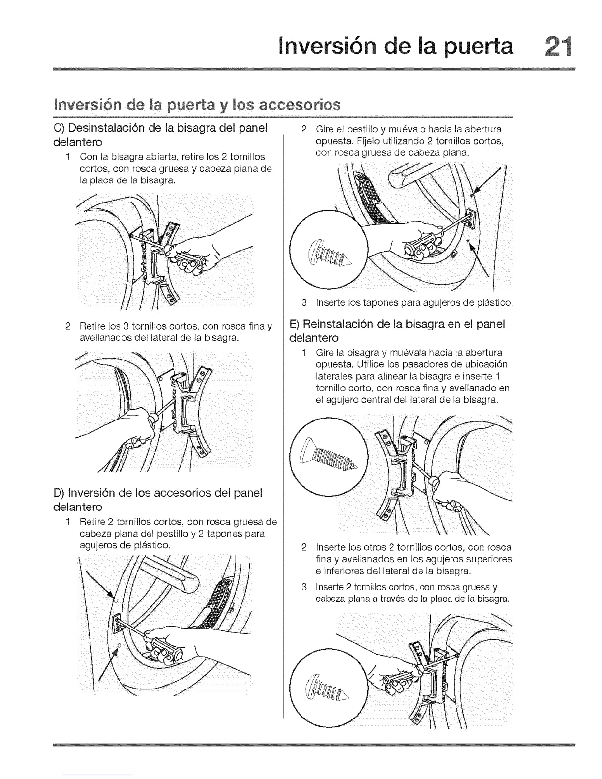 cabeza ptana a trav6s de la placa de ta bisagra.