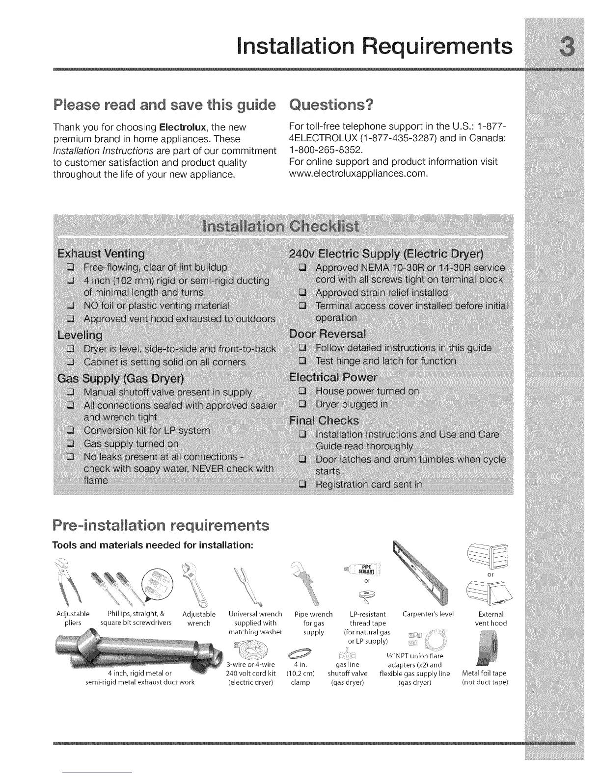 4ELECTROLUX (1-877-435-3287) and in Canada: