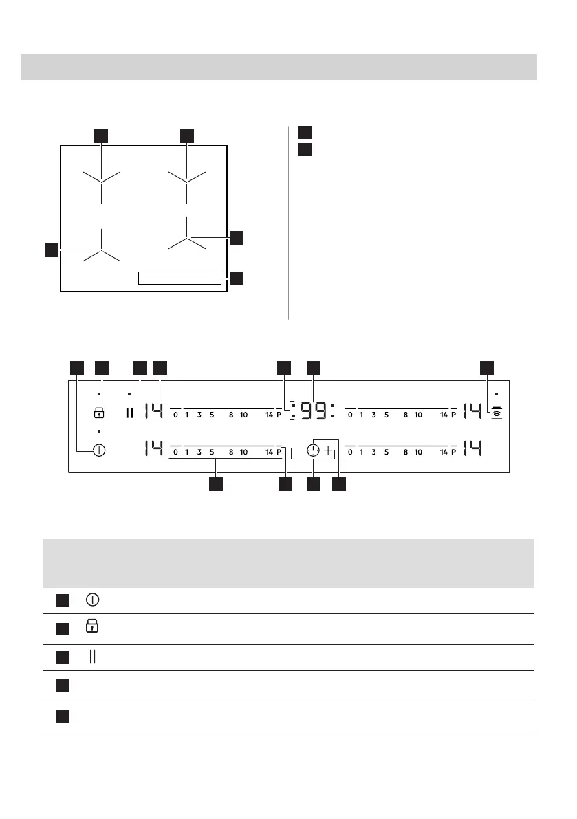 ВКЛ/ВИМК Увімкнення та вимкнення варильної поверхні.