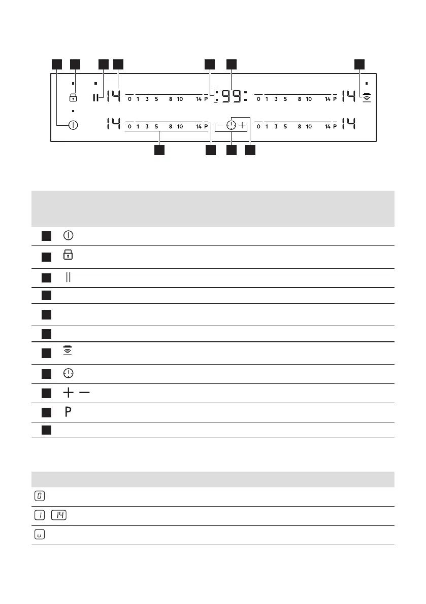 MARCHE / ARRÊT Pour allumer et éteindre la table de cuisson.