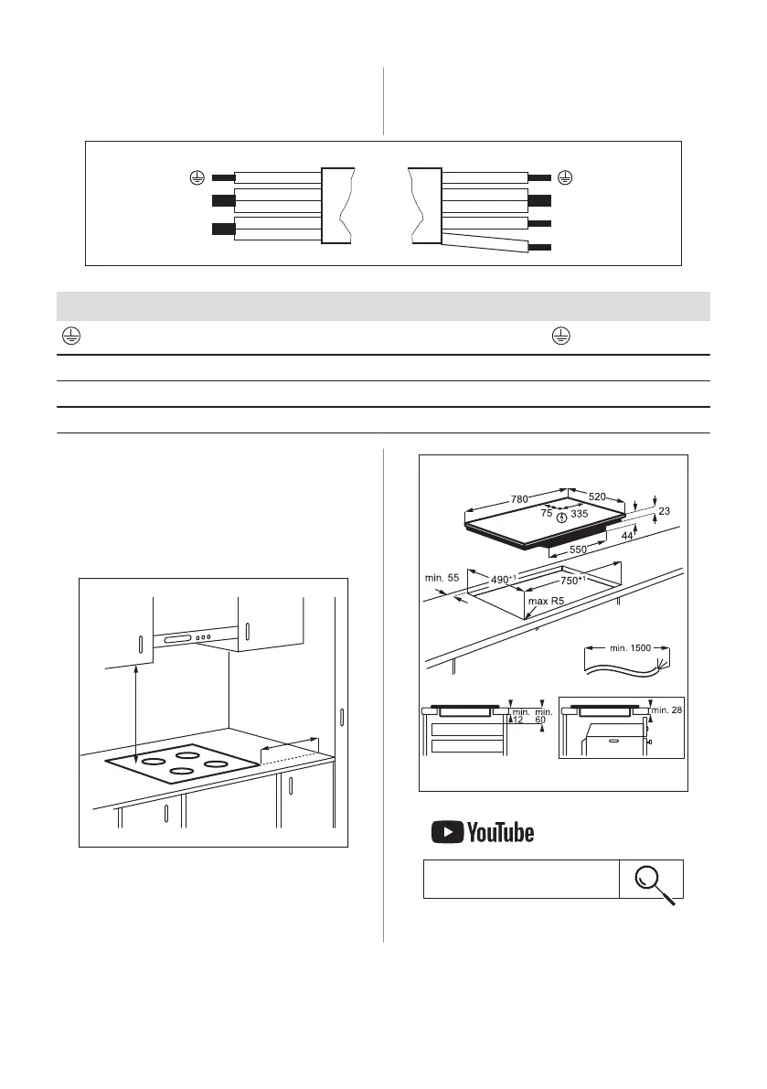 Si vous installez la table de cuisson sous une
