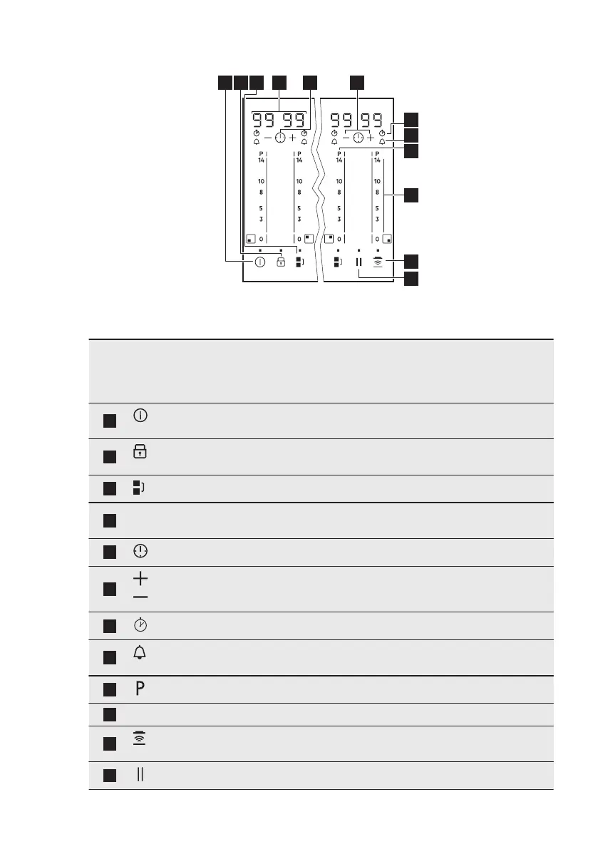 - Bandeau de sélection Pour sélectionner un niveau de cuisson.