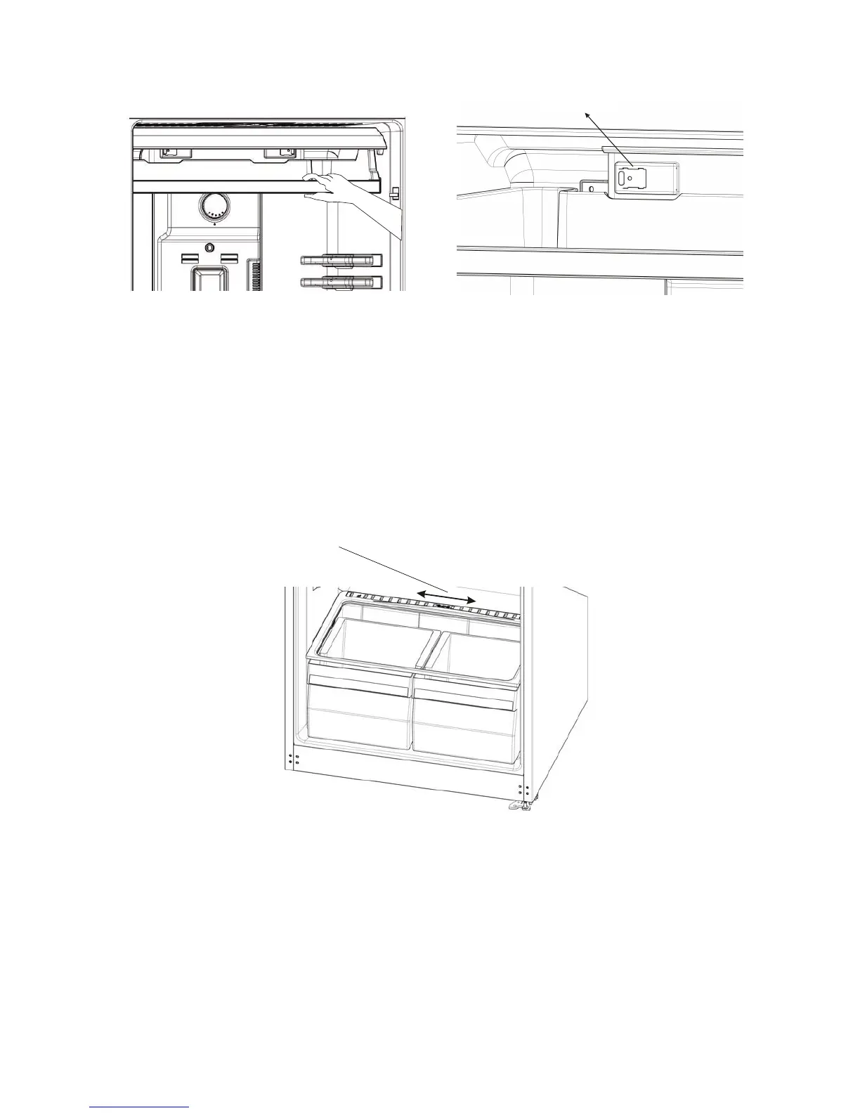 Deberá abrir la tapilla de detrás del estante de vidrio, en caso de que observe