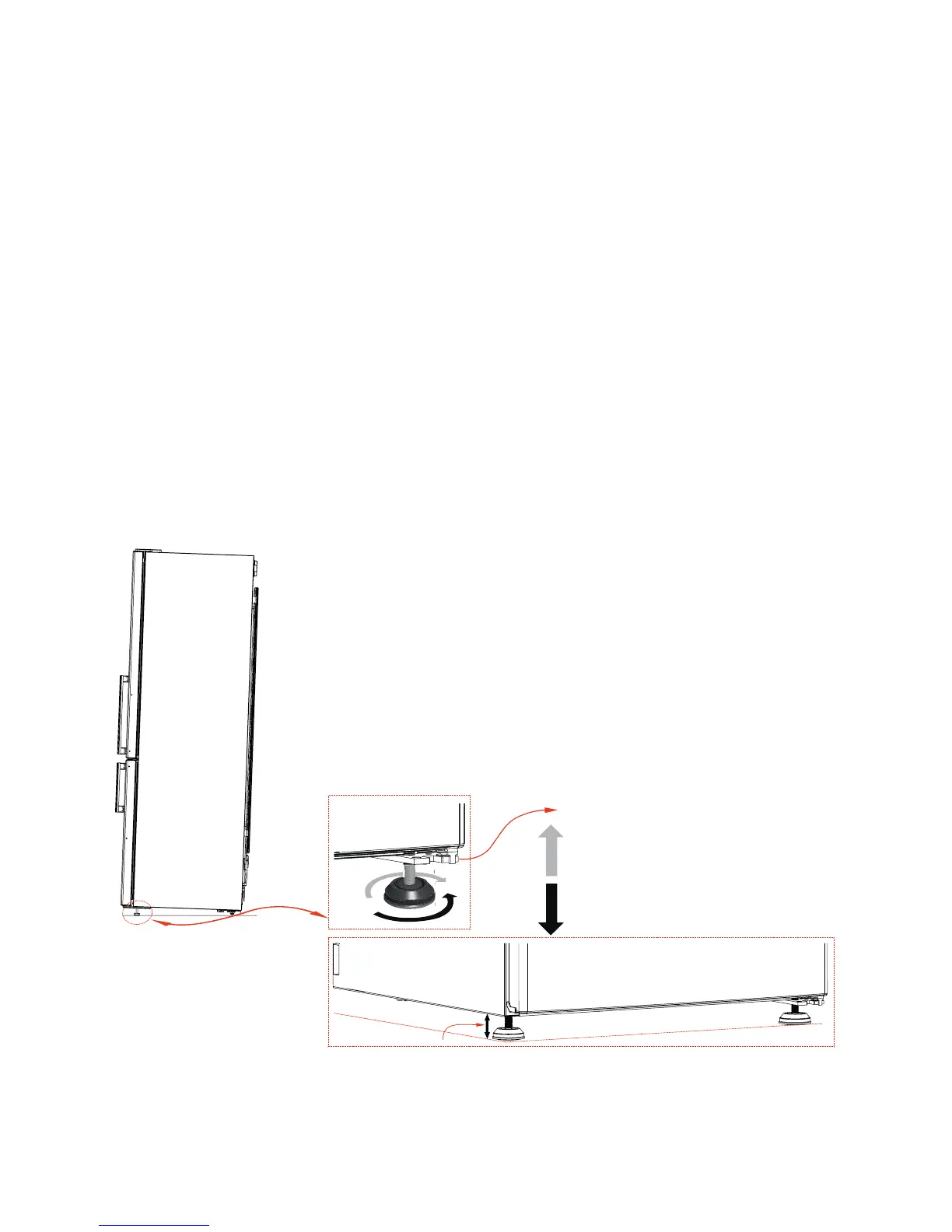 * Poggiare il frigorifero con una piccola angolazione sul retro dopo aver rimosso il