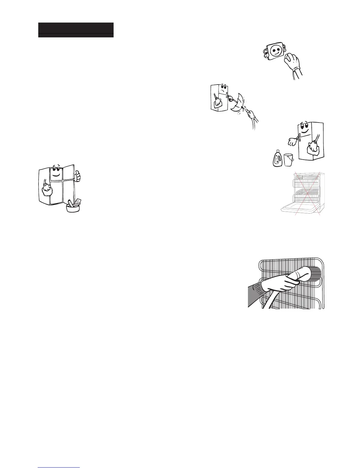 Asegúrese de que el frigoríco esté desenchufado cuando lo esté limpiando o lo vaya